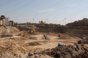 The western side of the shrine, between the Abu Talib portico and the Station of Imam Sajjad, was selected after extensive study as the most suitable location. The work involved advanced soil stabilization, including the installation of nearly one thousand pilings, each twenty-five meters deep, to reinforce the perimeter. Excavation covered an area of 150 meters by 400 meters, at a depth of 17 meters, with measures taken to manage groundwater and prevent soil collapse.
